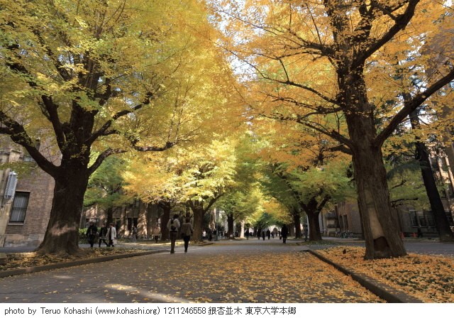 2012年12月1日: 東京大学本郷キャンパスの銀杏並木が見事な黄色になりました。 落葉した黄色の葉っぱの上を散策が12月初旬まで楽しめそうです。