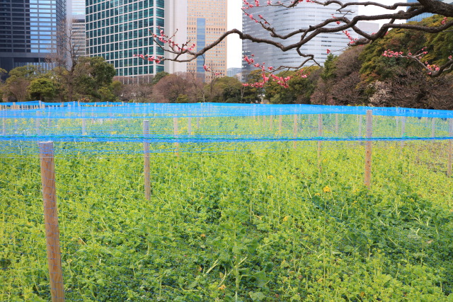2103-02-13: 浜離宮の白梅は毎年遅いです。 紅梅は早く咲き、すでに見ごろ終わり。 庭園全体では1・2割ほどの梅が咲いていました。