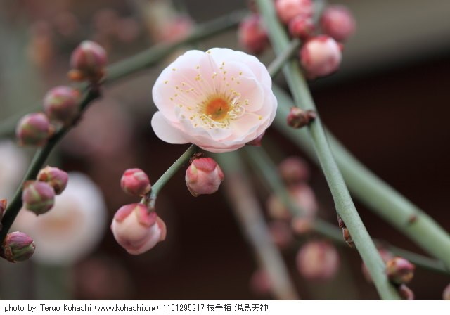 2011年1月: 梅で有名な湯島天神では、例年、早咲きの白梅が1月から咲き始めます。 アルバムでは、1月12日からの1月中の白梅や枝垂れ梅をご覧いただけます。